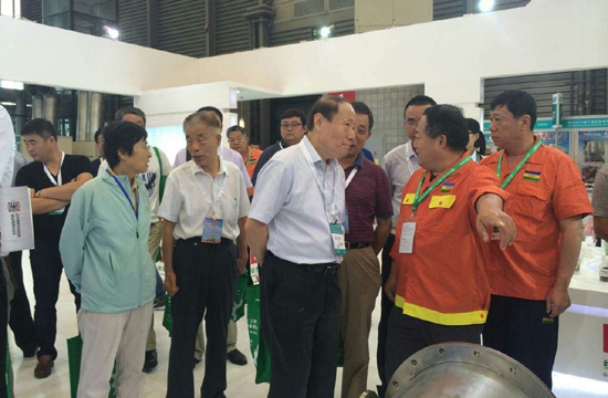 集團公司董事長張金成(左三)、副總經(jīng)理王富興(右一)參加展會