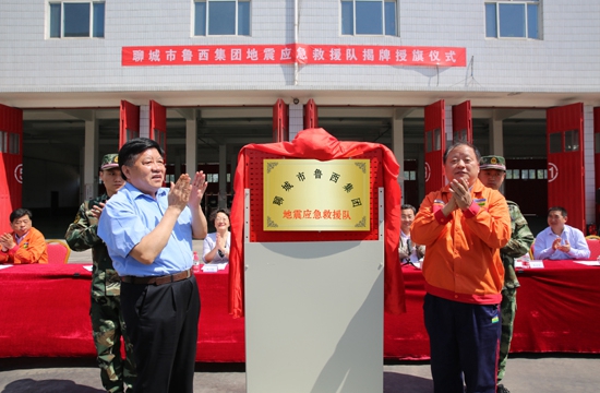聊城市魯西集團地震應急救援隊揭牌授旗儀式在魯西集團舉行