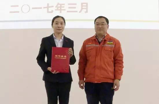 圖為集團副總經理、工會主席張雷為一等獎獲得者頒獎。