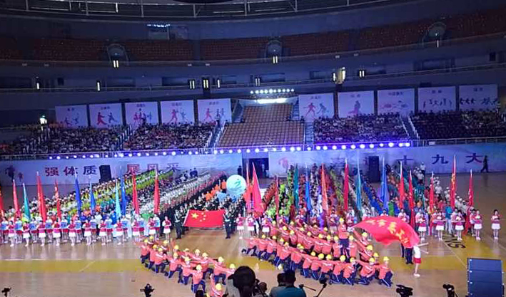 伴隨著振奮人心的《運動員進行曲》,由百余名健兒組成的運動員方隊踏著整齊的步伐,英姿颯爽意氣風發地進入運動場。
