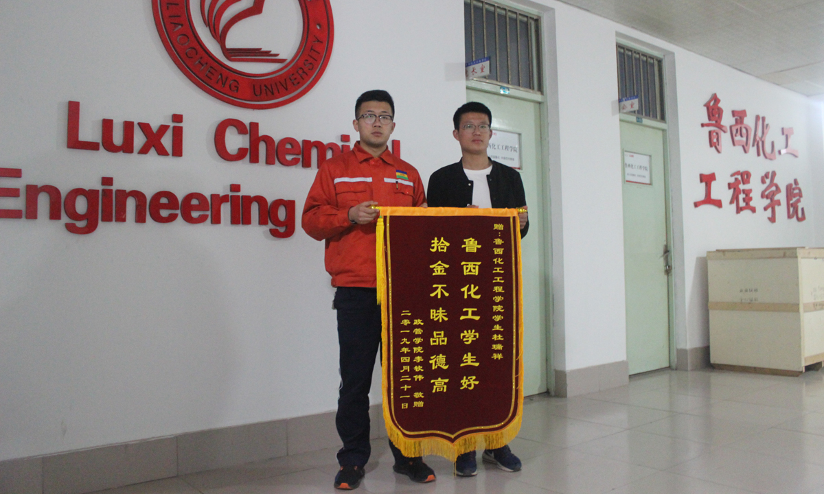 近日,聊城大學政管學院李欽偉同學來到魯西化工工程學院管理辦公室,送來一面“魯西化工學生好 拾金不昧品德高”的錦旗。