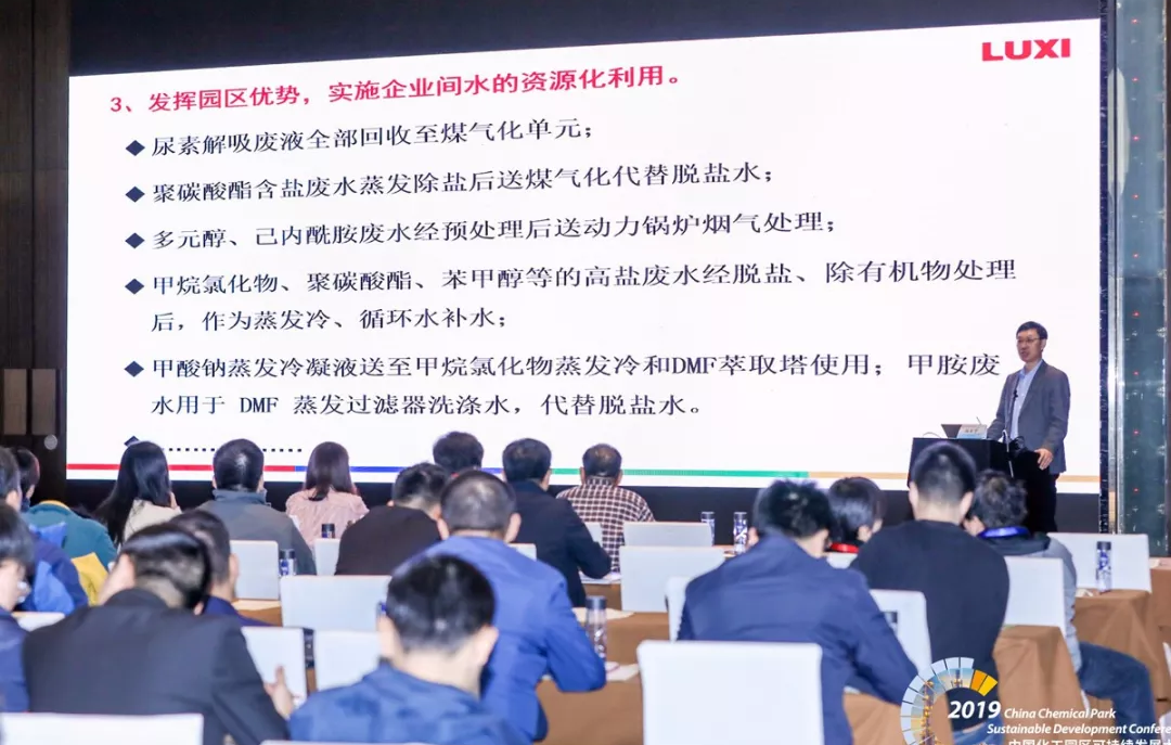 大會公布了6家“2019年綠色化工園區”和6家 “2019年綠色化工園區(創建單位)”名單。聊城化工產業園榮獲“綠色化工園區”稱號,是內陸化工園區中唯一獲得此項殊榮的園區。集團副總經理楊本華作為嘉賓出席會議并在會上做了“化工園區廢水零排放實踐”的主旨發言。