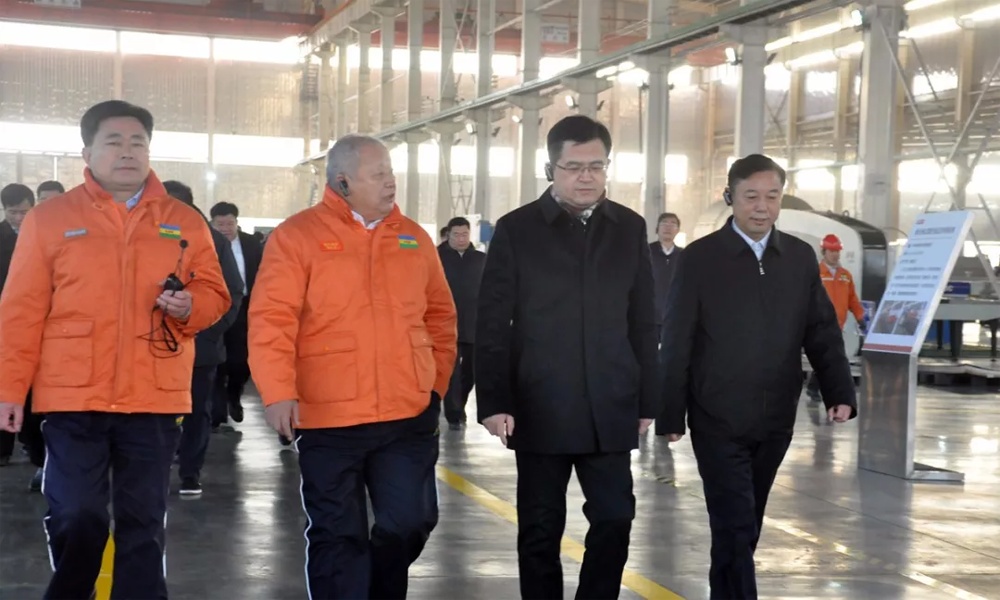 觀摩現場,董事長張金成首先對市委市政府一直以來的大力支持和幫助表示感謝,并簡要匯報了集團今年以來的運營情況和裝備制造產業的發展建設情況。