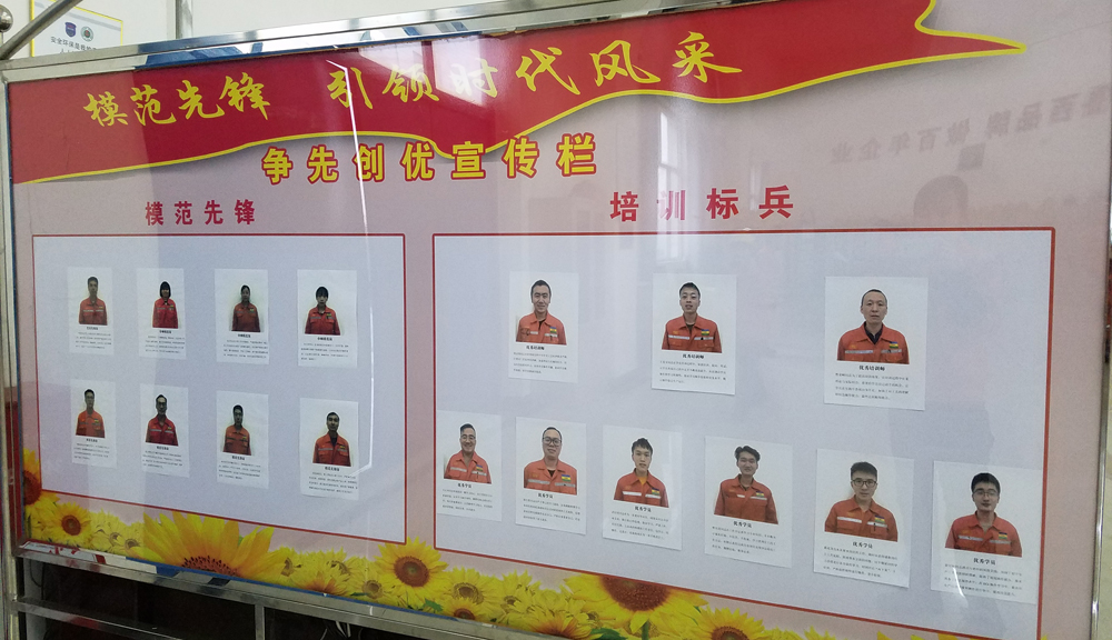 為提高員工的操作技能,氟材料事業(yè)部每月對(duì)員工再教育進(jìn)行評(píng)比,首先是在每個(gè)班組評(píng)選“優(yōu)秀培訓(xùn)師”,其次是每個(gè)班組根據(jù)員工的學(xué)習(xí)成績(jī)、綜合表現(xiàn)、實(shí)操驗(yàn)證等幾個(gè)維度,評(píng)選“優(yōu)秀學(xué)員”,每月將評(píng)選出的“優(yōu)秀培訓(xùn)師”和“優(yōu)秀學(xué)員”的照片貼在主控室“爭(zhēng)先創(chuàng)優(yōu)宣傳欄”內(nèi),這一活動(dòng)的開展,大大地激發(fā)了廣大員工的學(xué)習(xí)積極性,學(xué)習(xí)成績(jī)也有了很大的進(jìn)步,綜合學(xué)習(xí)成績(jī)比原來有了明顯的提高,個(gè)人最低成績(jī)提高了35分。爭(zhēng)先創(chuàng)優(yōu)宣傳欄成了氟材料事業(yè)部最典型、最直接、最直觀的思想教育教材,引導(dǎo)員工爭(zhēng)相努力學(xué)習(xí)業(yè)務(wù)知識(shí),有效地助推了綜合技能的提升。