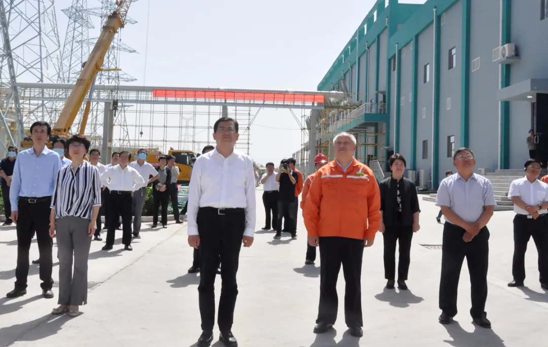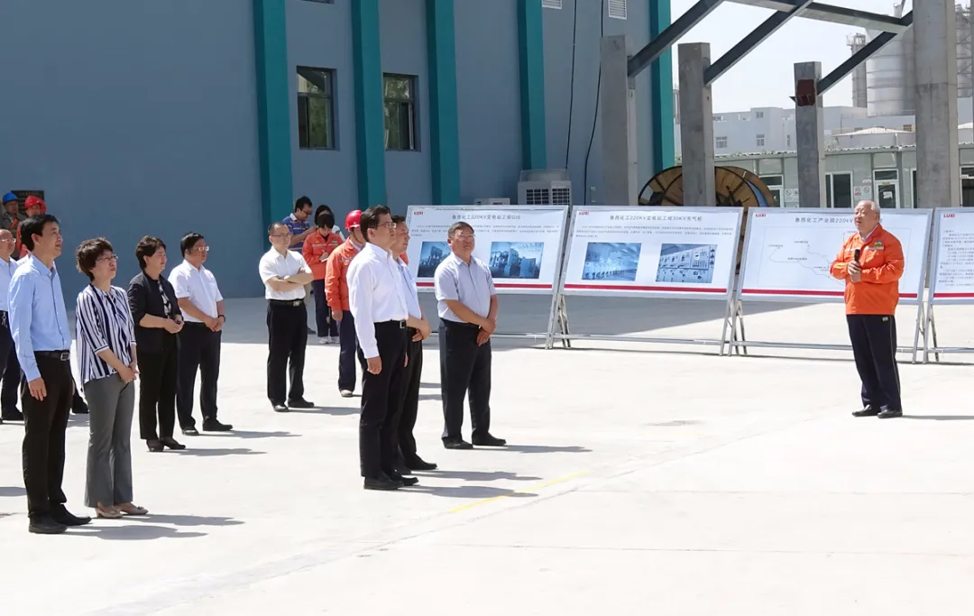 在魯西集團輸變電工程項目建設現(xiàn)場,聽取了集團黨委書記、董事長張金成關于輸變電工程項目建設情況、集團去年的運營指標、今年1-5月份的生產運營情況、重點任務的完成情況以及與中化的合作情況匯報。