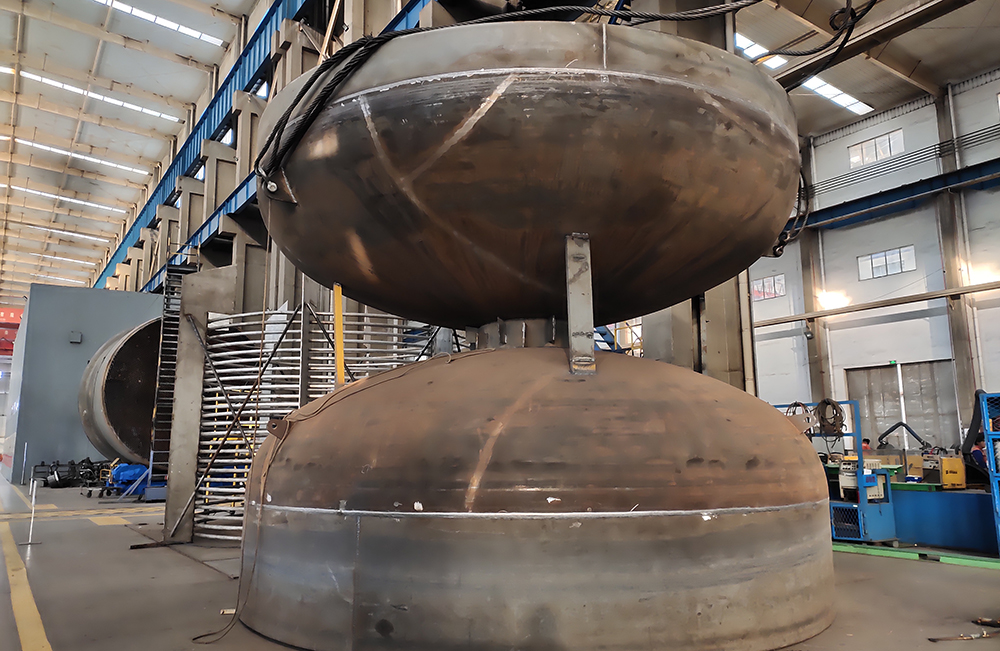 在設備加工技術(shù)創(chuàng)新方面,制造與工程事業(yè)集團技術(shù)人員努力攻關(guān),自制工裝模具配合4000T 壓力機設備突破了容器膨脹節(jié)壓制技術(shù)瓶頸,實現(xiàn)容器膨脹節(jié)自制,同時對大直徑分瓣錐節(jié)組裝方式優(yōu)化,節(jié)約了成本,保證了項目設備需求。項目所需風管的組對制作,原工藝流程包括設備支腿焊接、葉片開孔按圖紙逐臺進行劃線定位、焊接、開孔,工作效率較低。技術(shù)人員摸索試驗了新的位置定位方式,使用模板對支腿、擋板位置進行劃線,工作效率提高了3 倍。