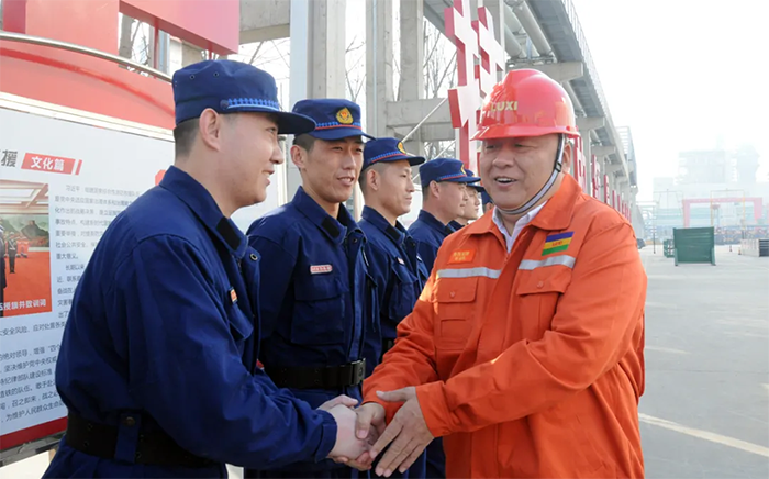 金牛奮蹄踏春來,2月11日,大年三十上午9點,集團黨委書記張金成深入園區(qū)生產(chǎn)一線、項目建設(shè)現(xiàn)場、應急救援中心、后勤保障部門,看望慰問堅守崗位的干部員工,向大家親切拜年,致以美好的新春祝福,祝福大家過年好,闔家幸福!牛年吉祥!祝愿企業(yè)蒸蒸日上!牛年興旺! 送去了集團黨委和集團公司的關(guān)懷和慰問。