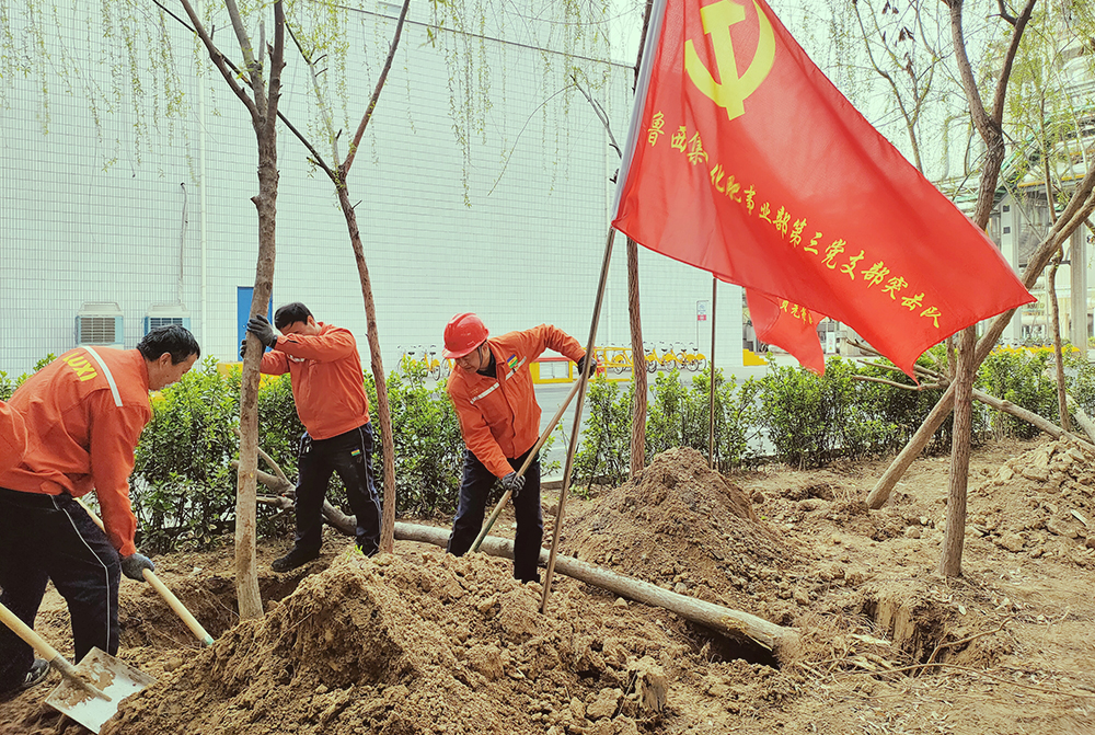 又是一年春光好,植樹耕耘正當時。當下,春回大地,萬物復蘇,正是植樹的大好時機。3月份,魯西集團化肥事業部第三黨支部協同化肥團支部全體黨員、團員,共同開展“每人一棵樹,建美麗園區”特色活動。廣大黨員干部積極發揮引領示范作用,與廣大團員群眾一起對園區進行綠化植樹,1萬余棵國槐、白蠟苗木被栽種到園區各個綠化帶,它們迎風挺立、排列整齊,展現出勃勃生機。