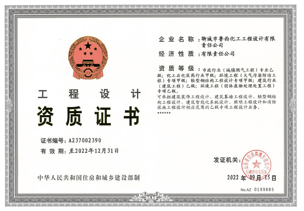 這是魯西集團(tuán)設(shè)計(jì)院繼2022年4月份,取得固體廢物處理處置工程乙級(jí)資質(zhì)后,再次迎來的好消息。經(jīng)山東省住房和城鄉(xiāng)建設(shè)廳關(guān)于對(duì)2022年第十批工程勘察設(shè)計(jì)資質(zhì),魯建許【2022】65號(hào)文件公示后,成功取得大氣污染防治工程專項(xiàng)甲級(jí)資質(zhì)證書。