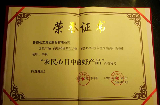 峰會開幕后便公布了萬眾注目的“農民心目中的好產品”獲獎品牌產品名單。魯西集團生產的高塔硝硫基復合肥以較高的網絡人氣和農戶滿意度再次榮獲“農民心目中的好產品”榮譽稱號。