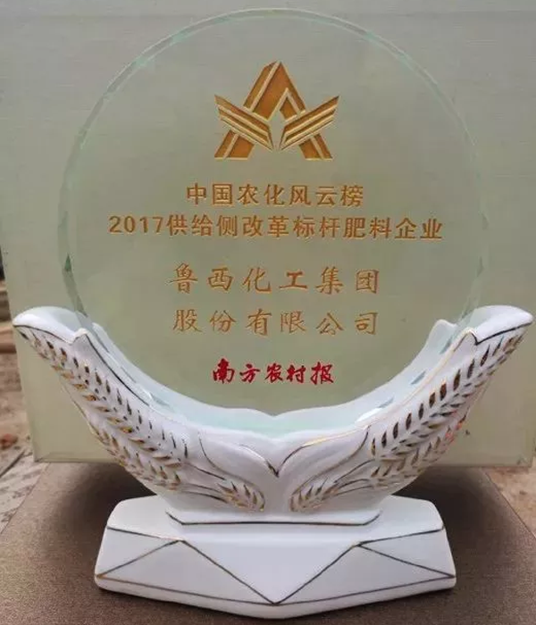 會上,魯西化工集團股份有限公司憑借研發、推廣新型農資和新模式的能力,以及在農資行業供給側結構性改革做出的突出貢獻,榮獲“2017供給側改革標桿肥料企業”稱號。